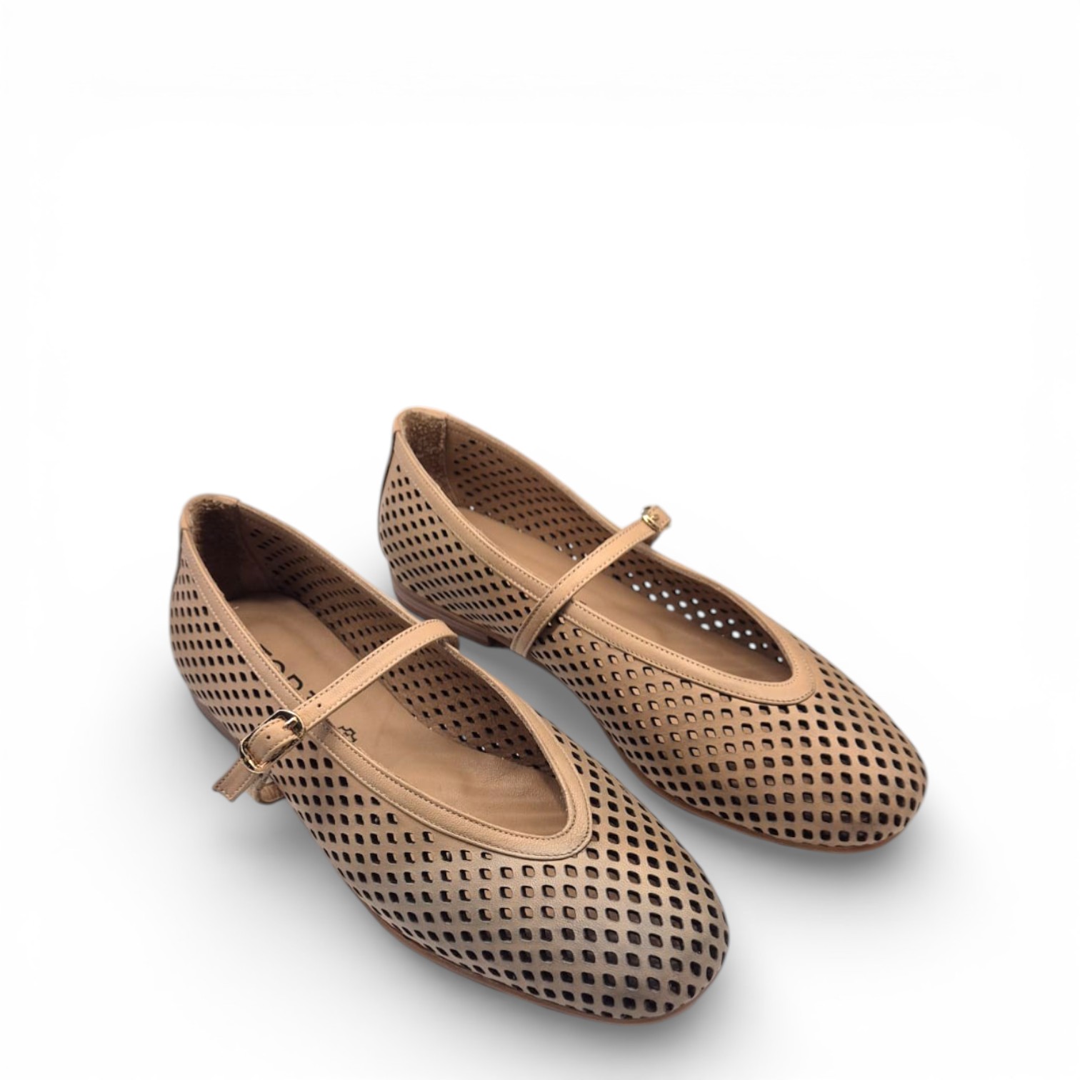 Bailarinas en piel troquelada con hebilla en el empeine.