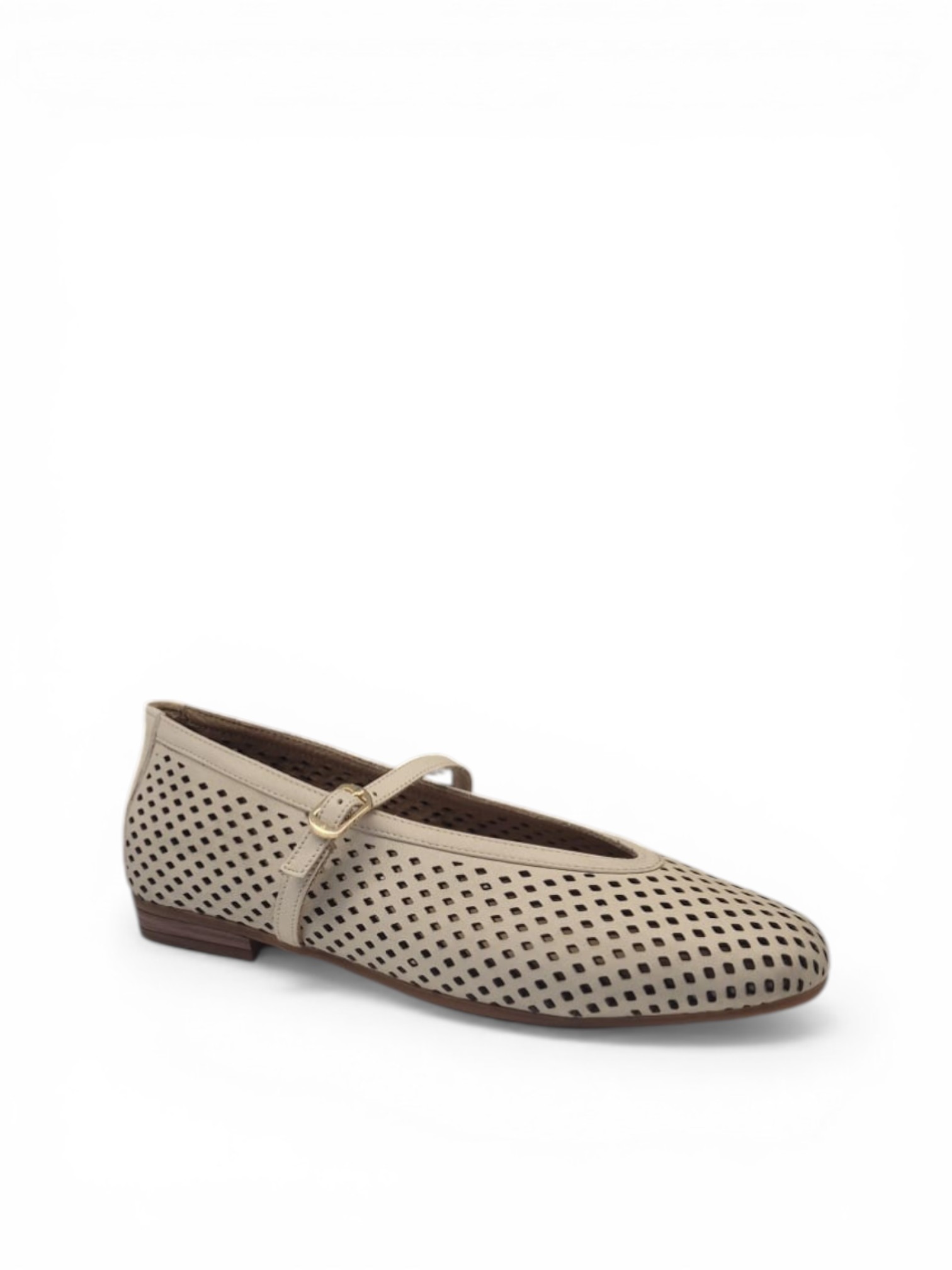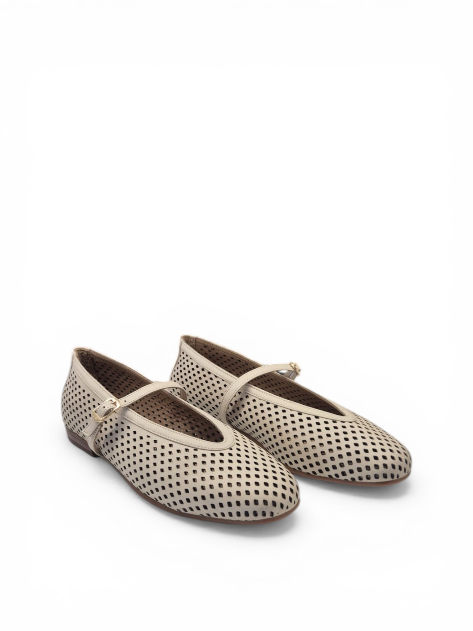 Bailarinas en piel troquelada con hebilla en el empeine.