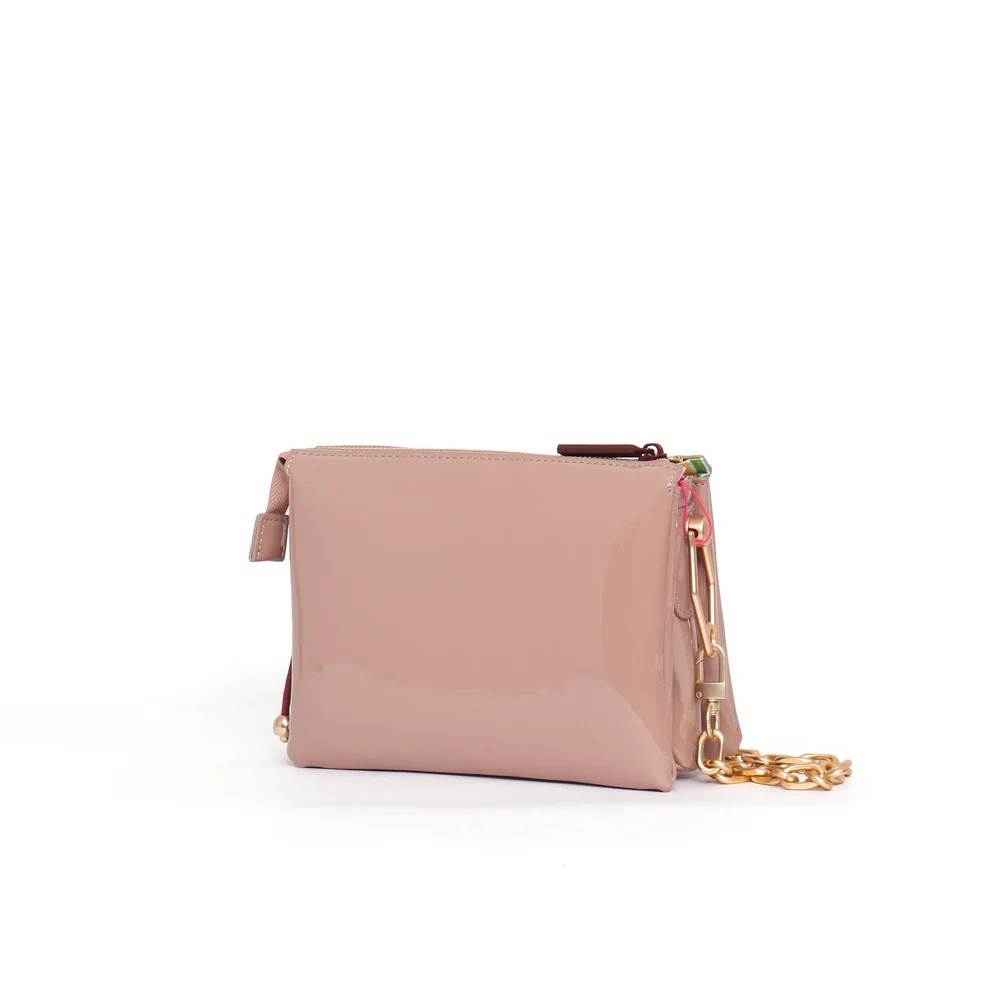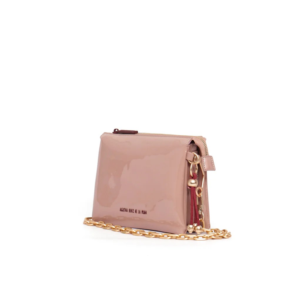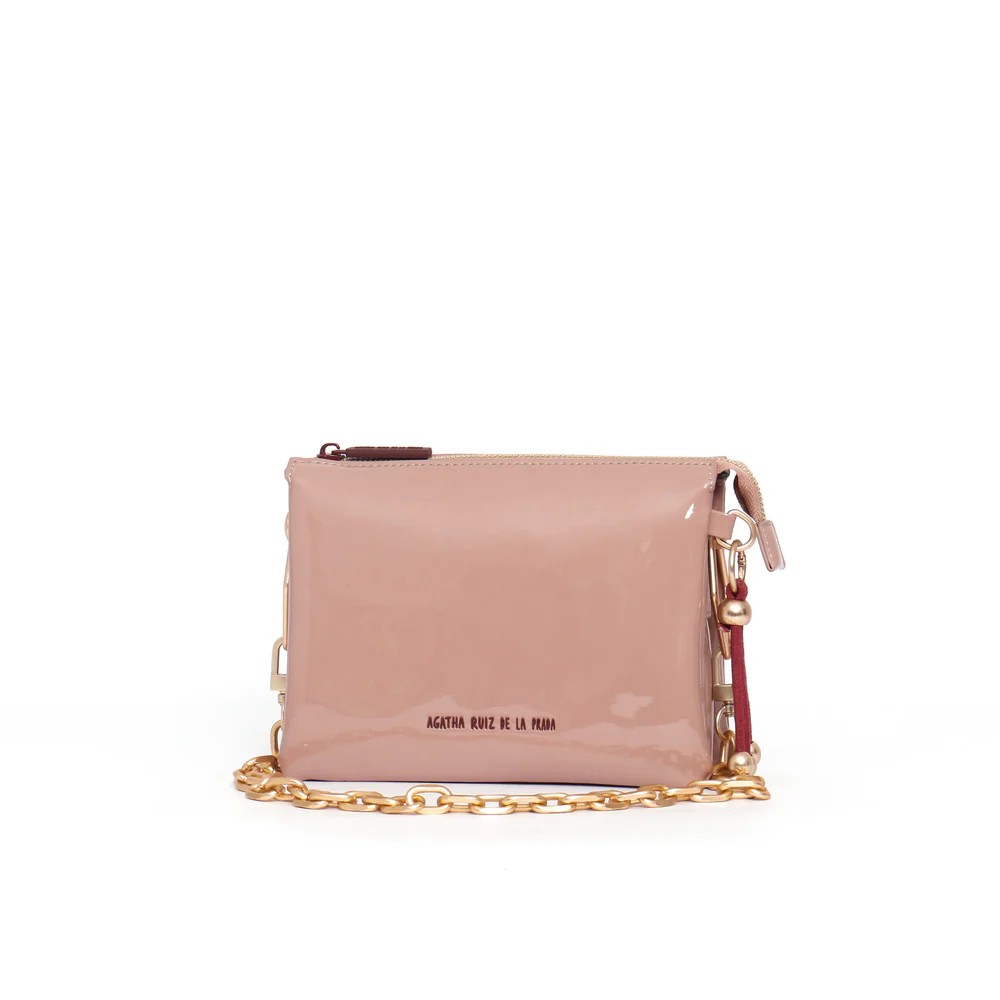 Bandolera con tres compartimentos de charol nude de Agatha Ruiz de La Prada.