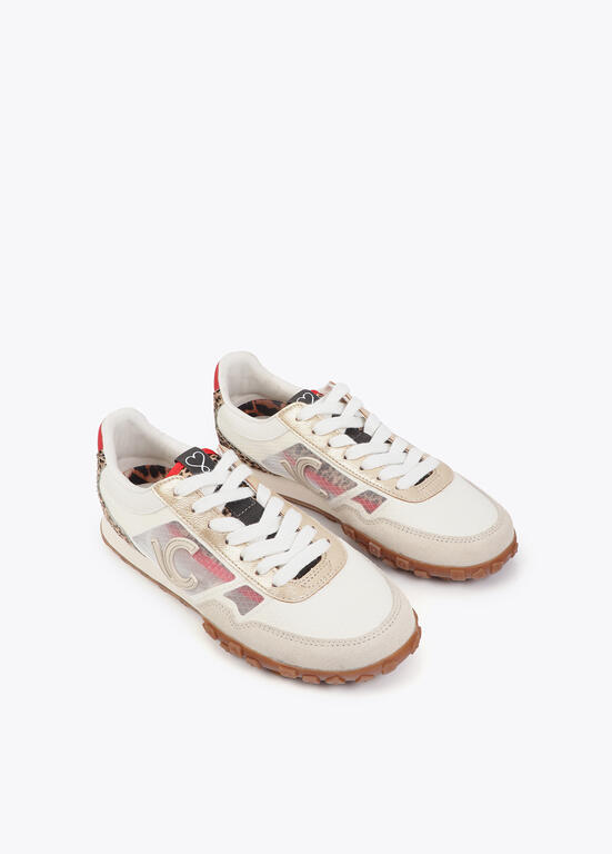 Deportiva estilosa combinada en varios tejidos. Con paneles de rejilla y detalles animal print. Ideal para completar tus looks casuales con un toque único. Suela de goma con excelente agarre.