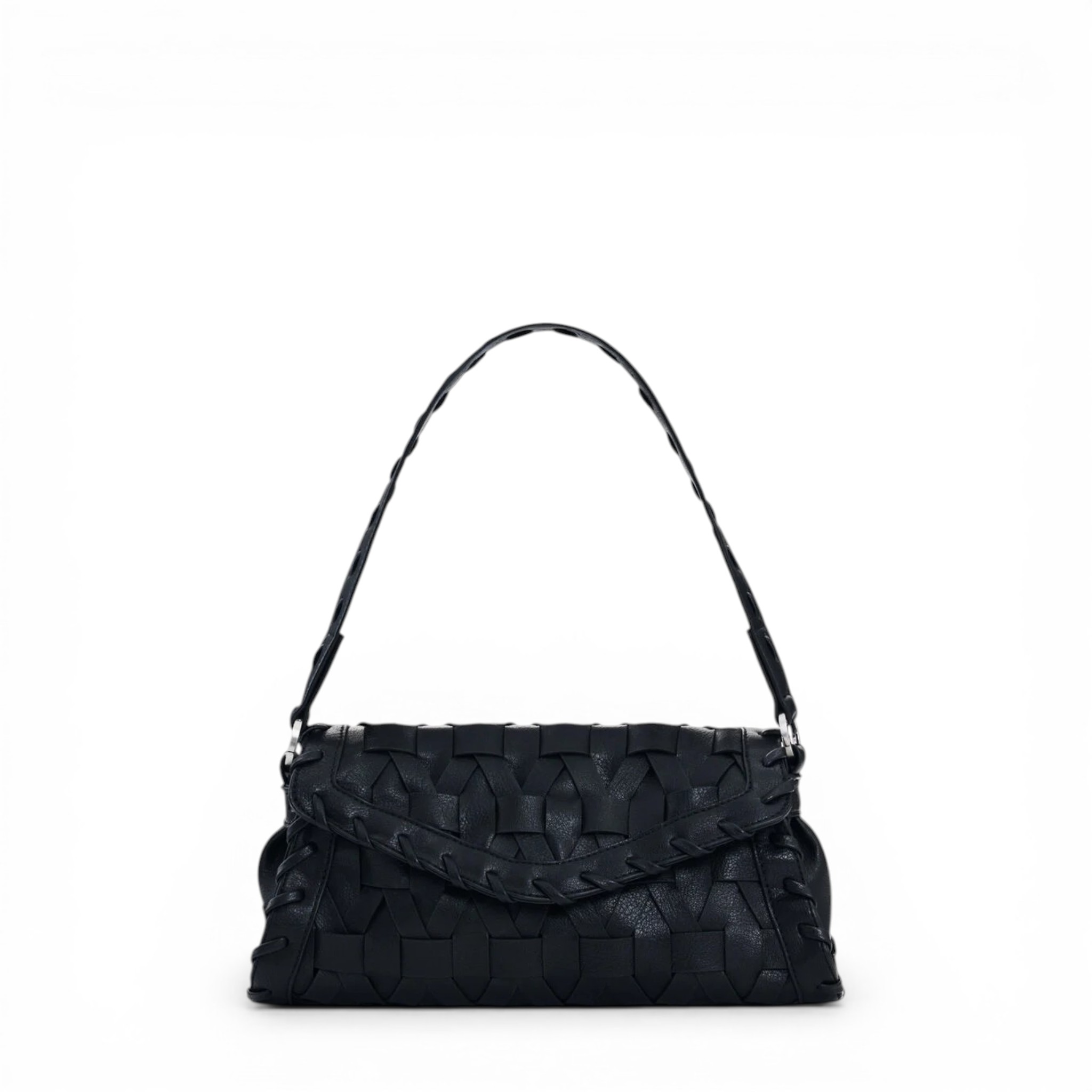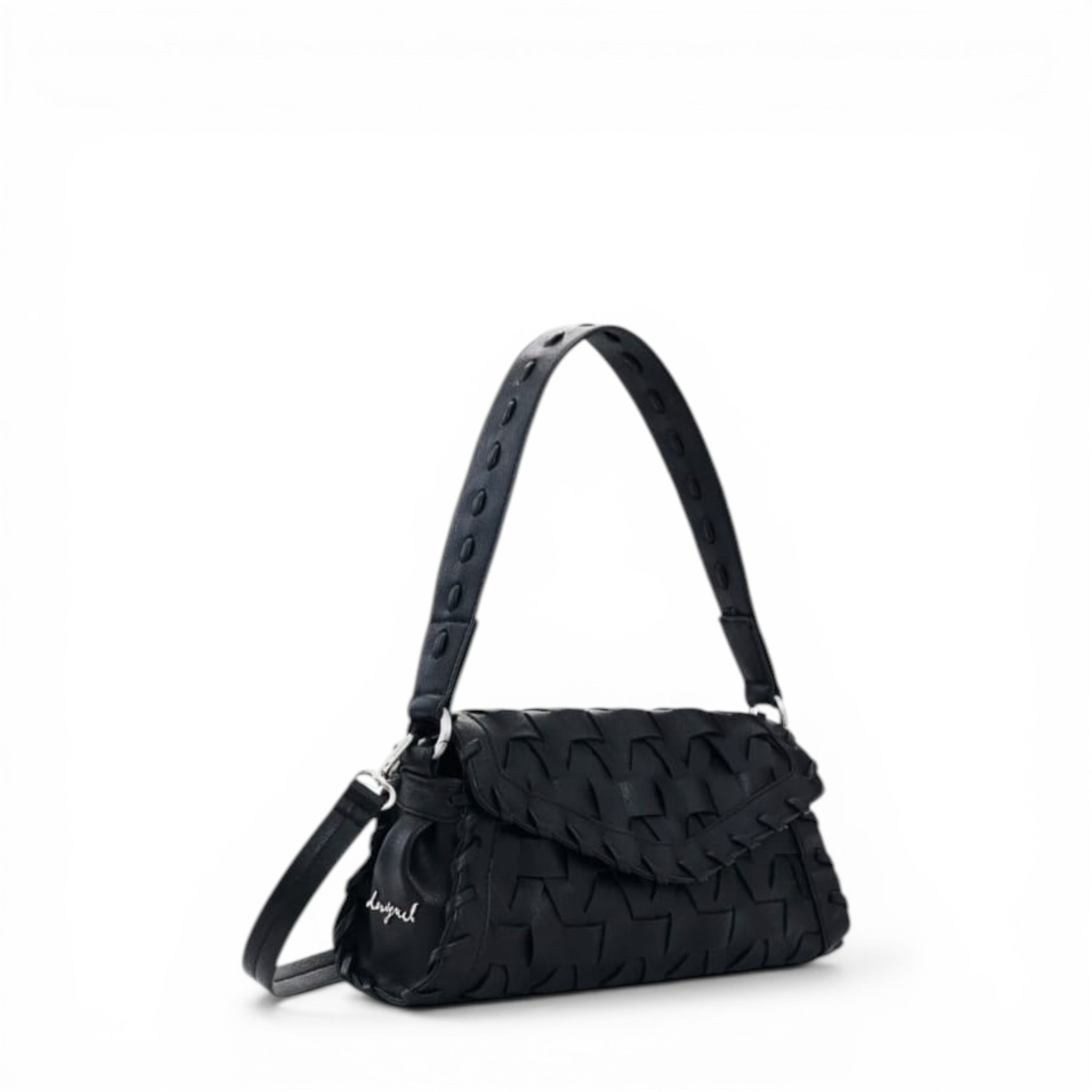 Bolso pequeño con solapa trenzado con efecto piel y correas intercambiables de la marca Desigual.