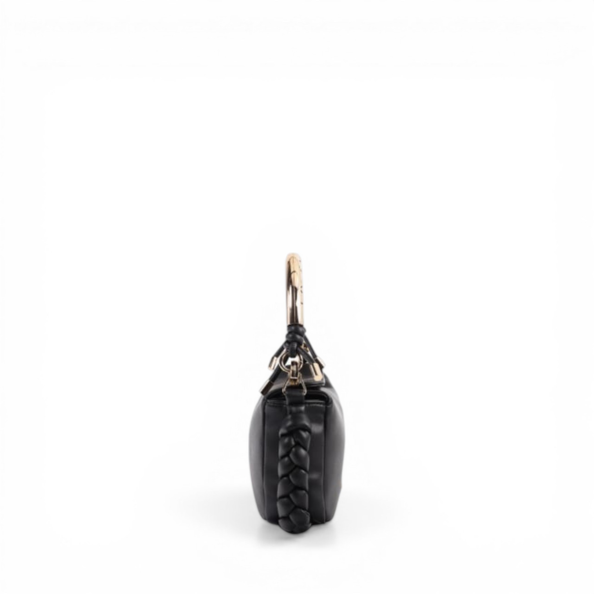 Mini bandolera con asa metalizada de la marca Lola Casademunt. Efecto piel y asa ajustable. Asa metalizada extraíble. Medidas: 26x15x8 c.