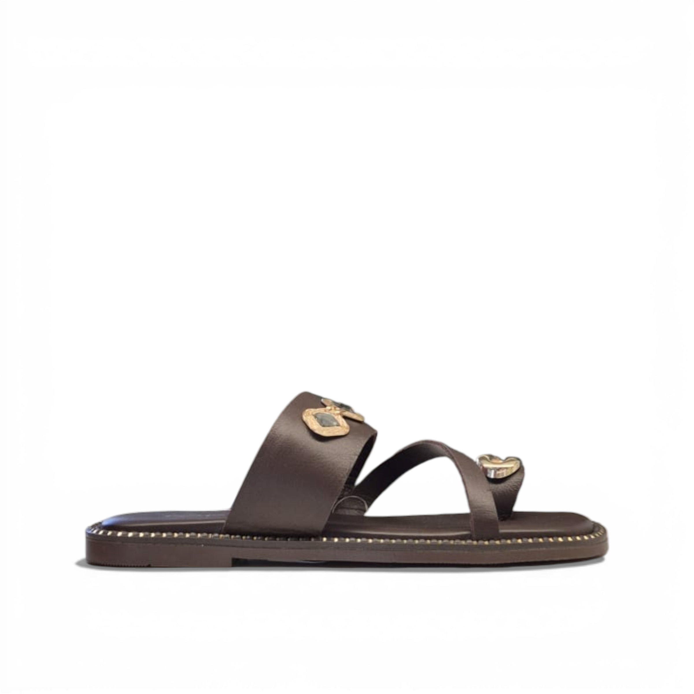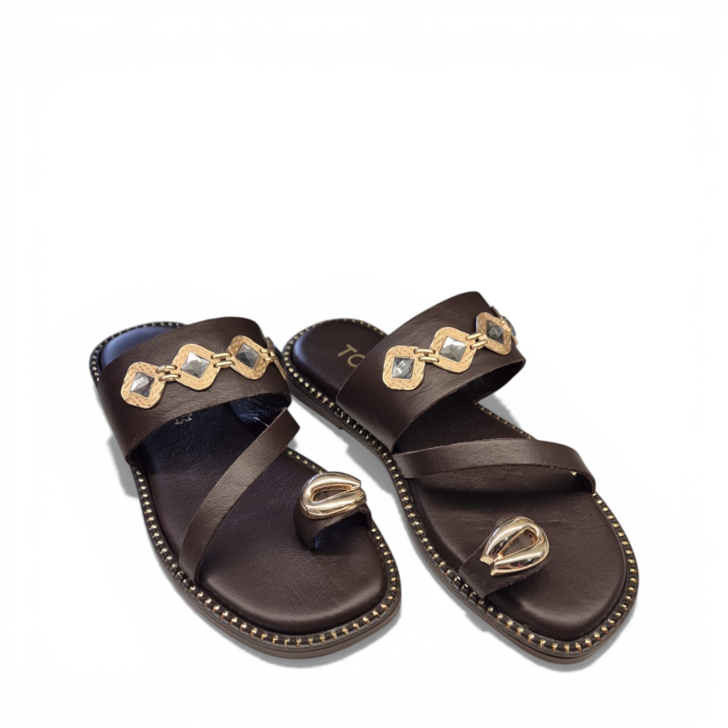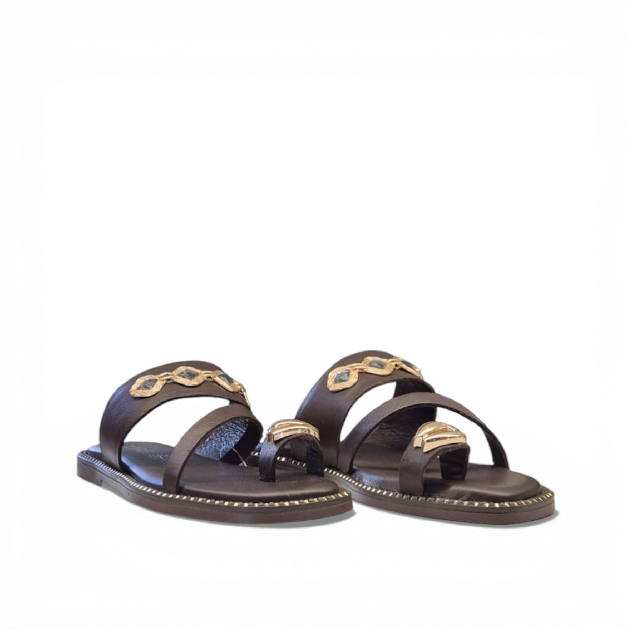 Sandalia plana de piel en color marrón chocolate, de la marca Top3.