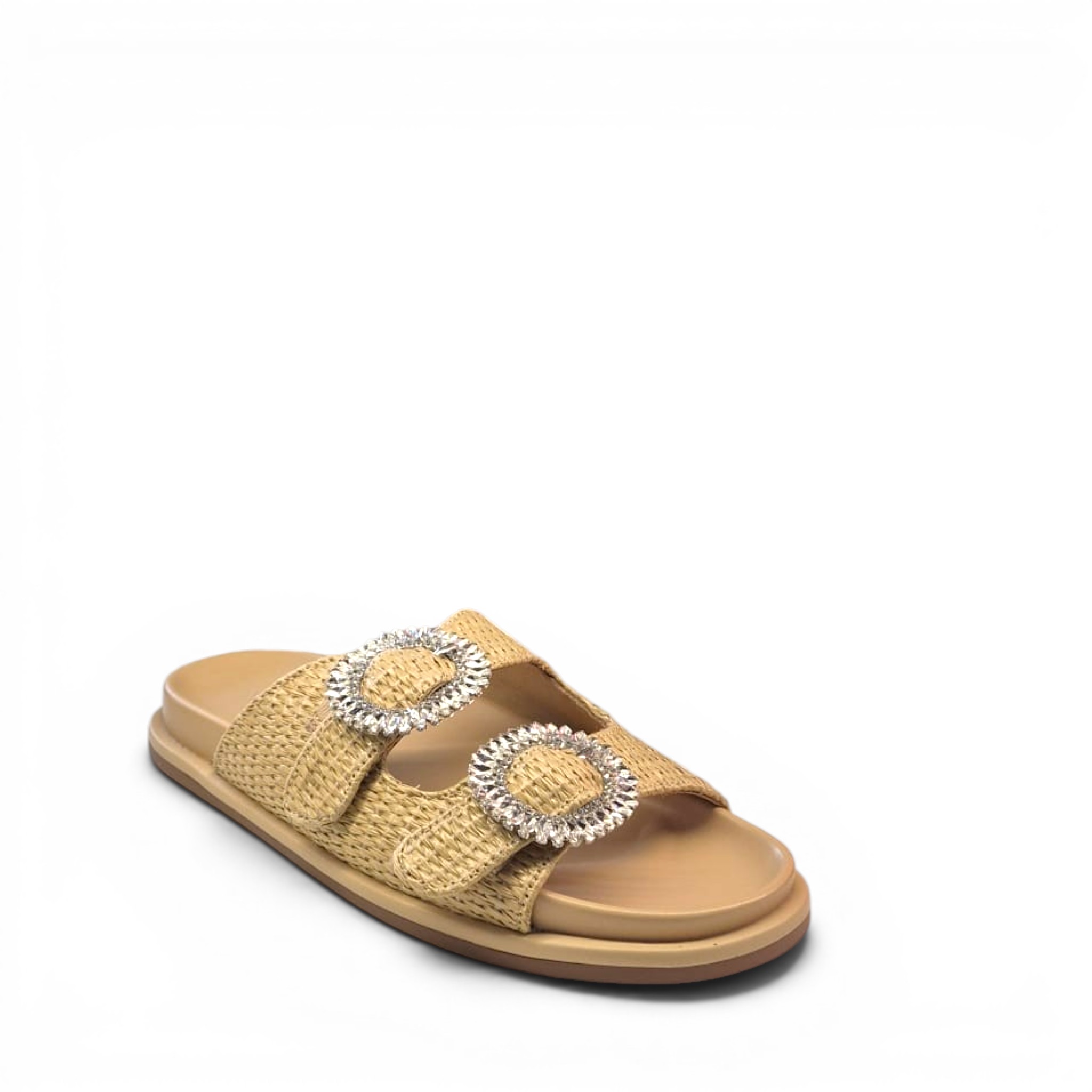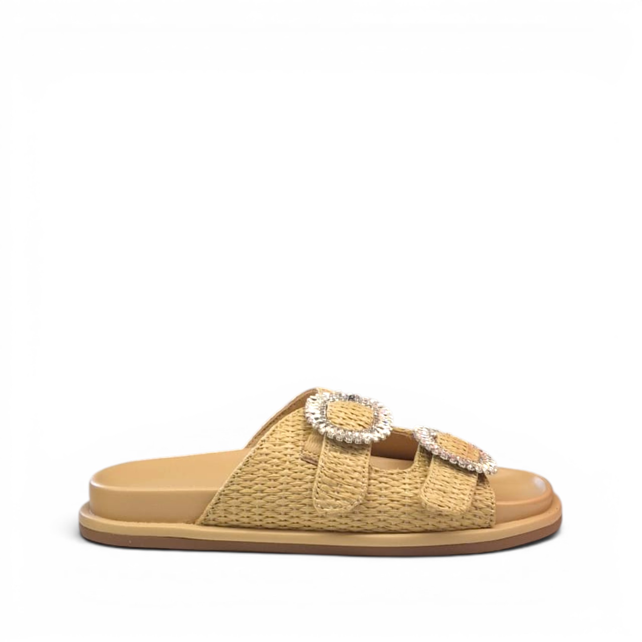 Sandalia plana con doble hebilla con pedrería de la marca Noa Harmon.