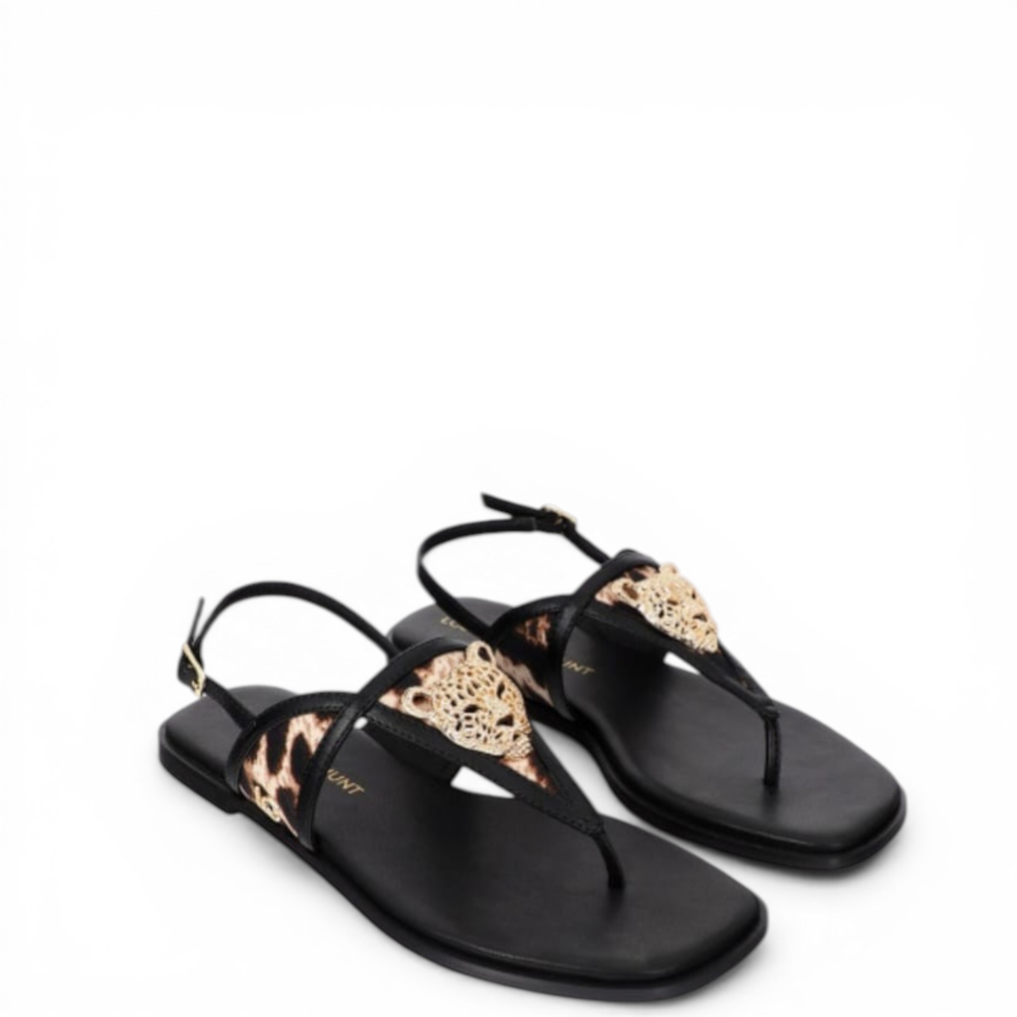 Sandalia esclava de animal print de Lola Casademunt. Cierre con hebilla. Plantilla de piel.