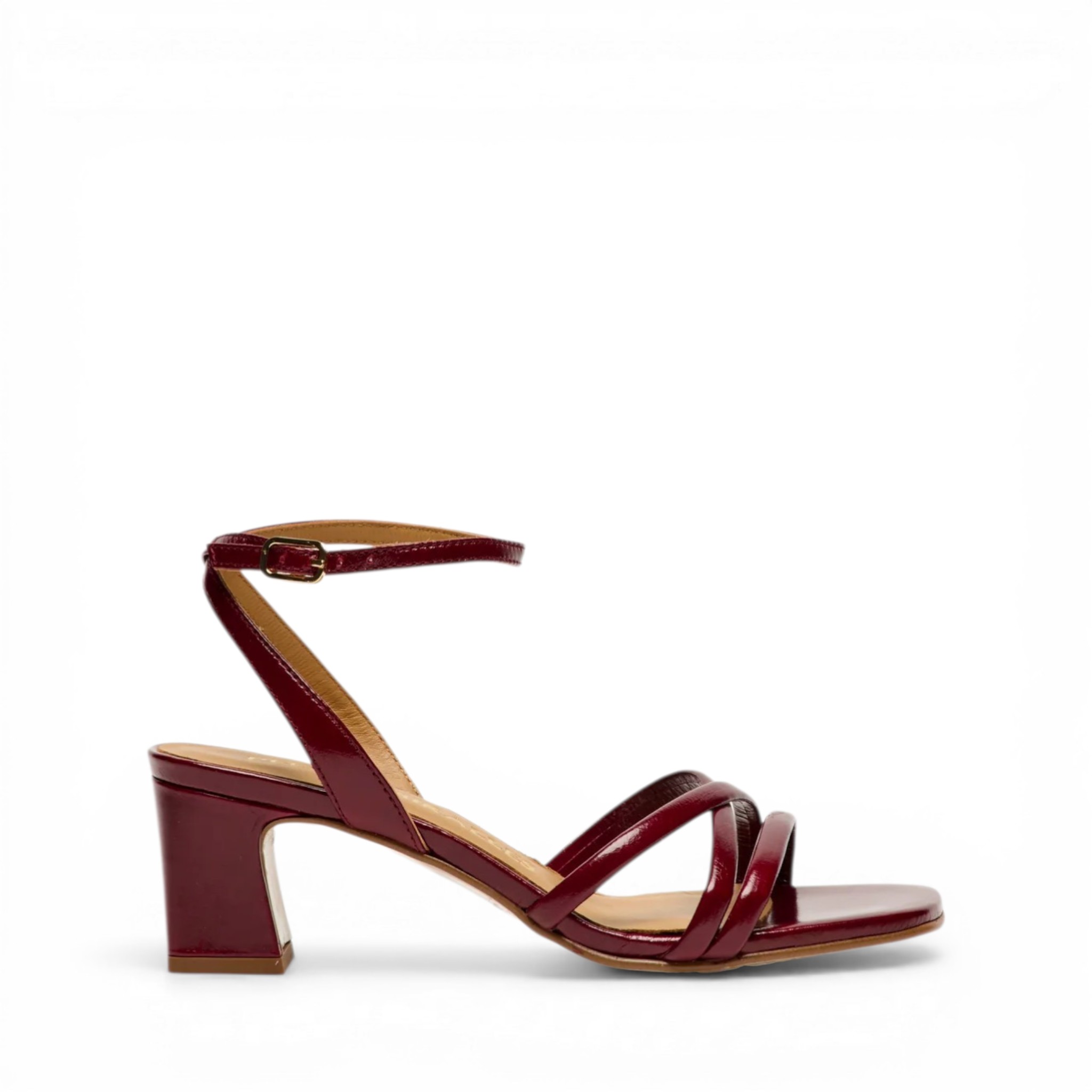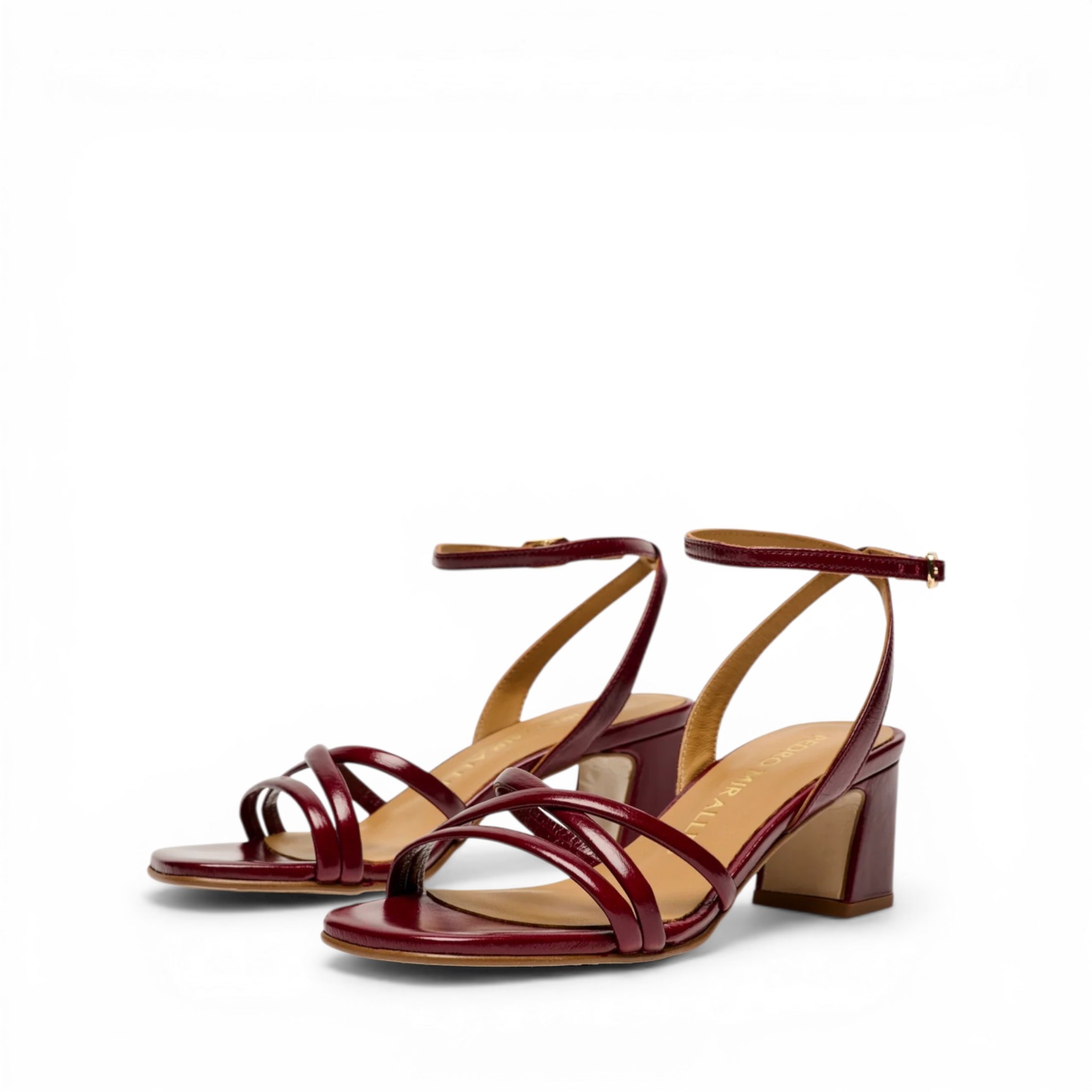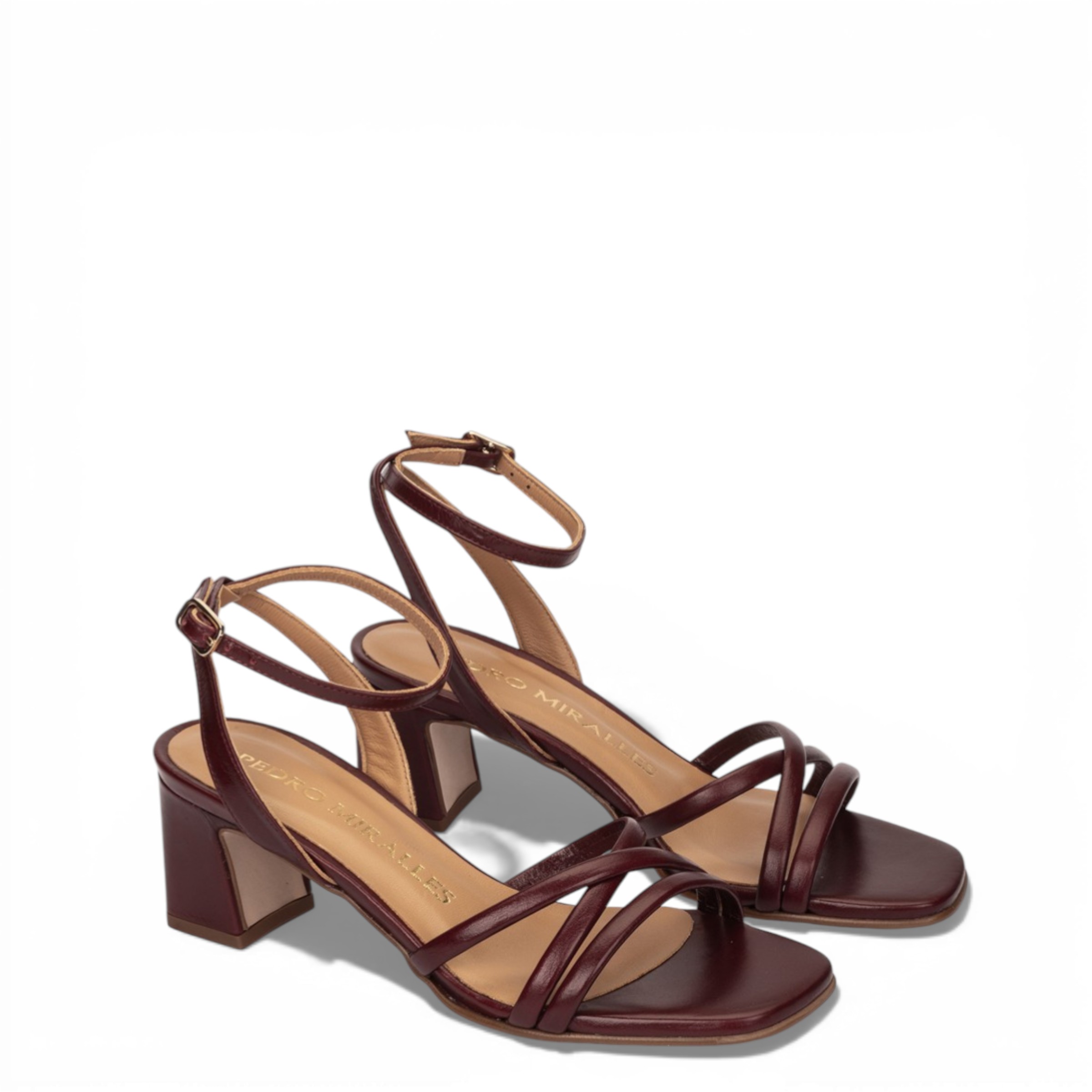 Sandalia de tacón medio, de la marca Pedro Miralles hecha a mano en España, con pulsera en el tobillo para una mejor sujeción.