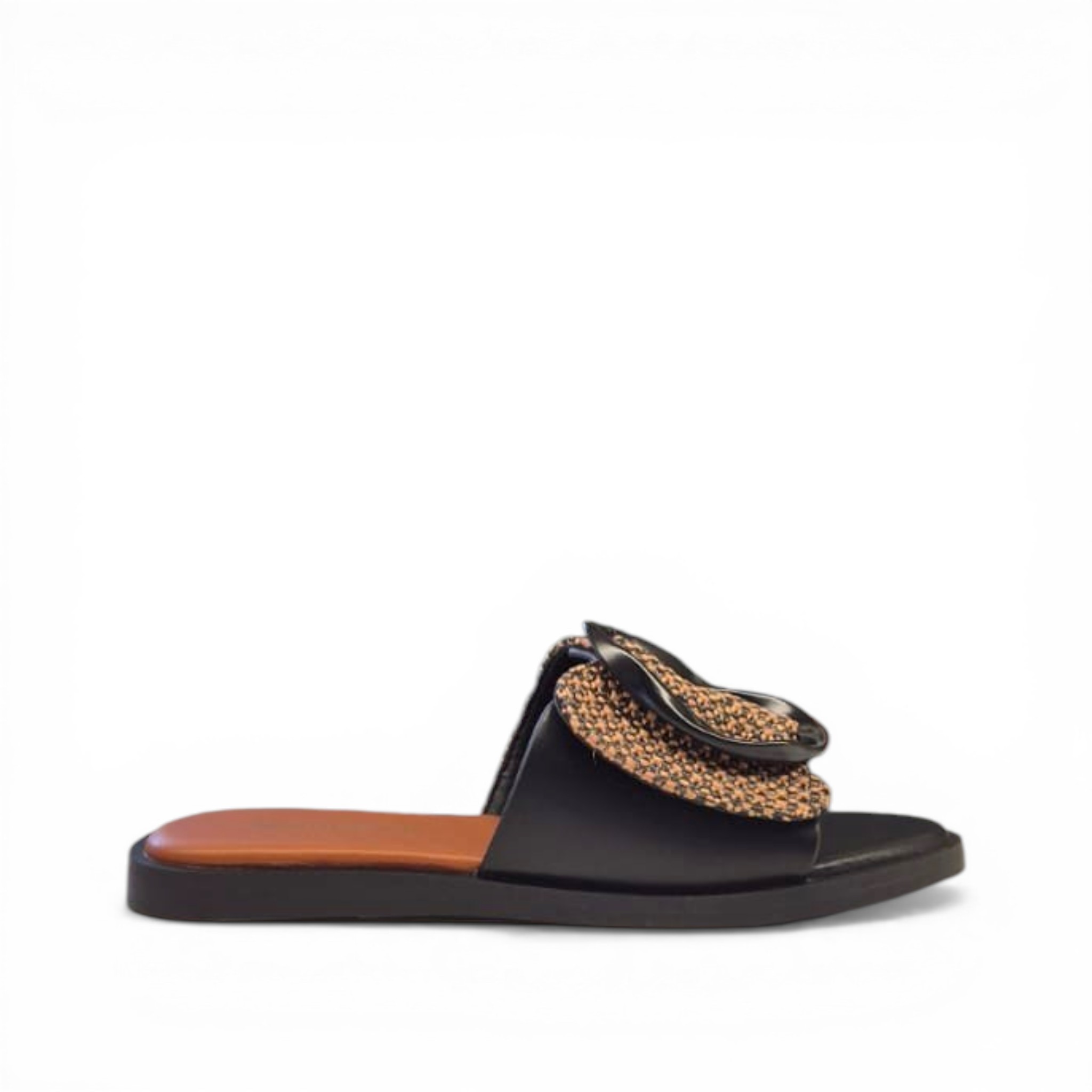 Sandalia plana de la marca Noa Harmon, fabricado en piel con detalles de hebilla. Suela antideslizante. Talla bien.