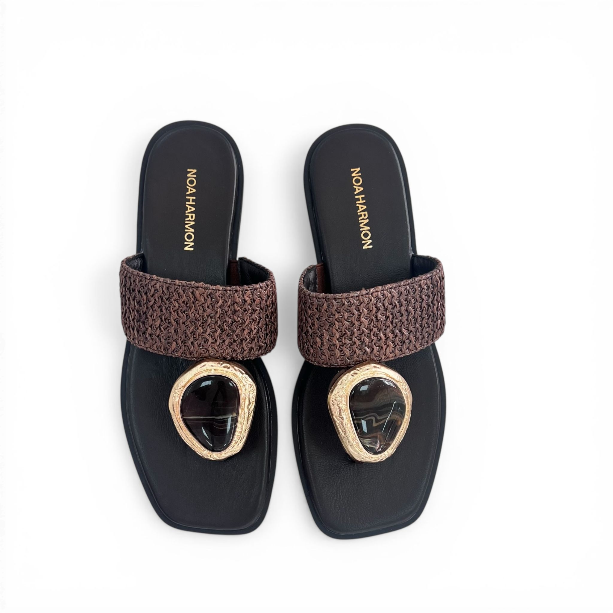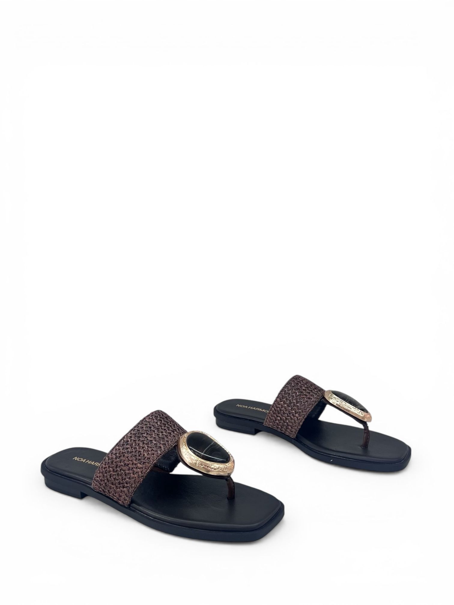 Sandalia de la marca Noa Harmon, detalles joya, plantilla en piel.